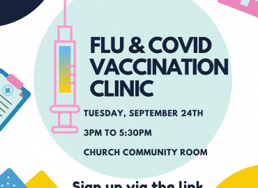 Annunciation will be hosting a FLU & COVID vaccination clinic on Tuesday, September 24th 3:00-5:30pm in the Community Room.